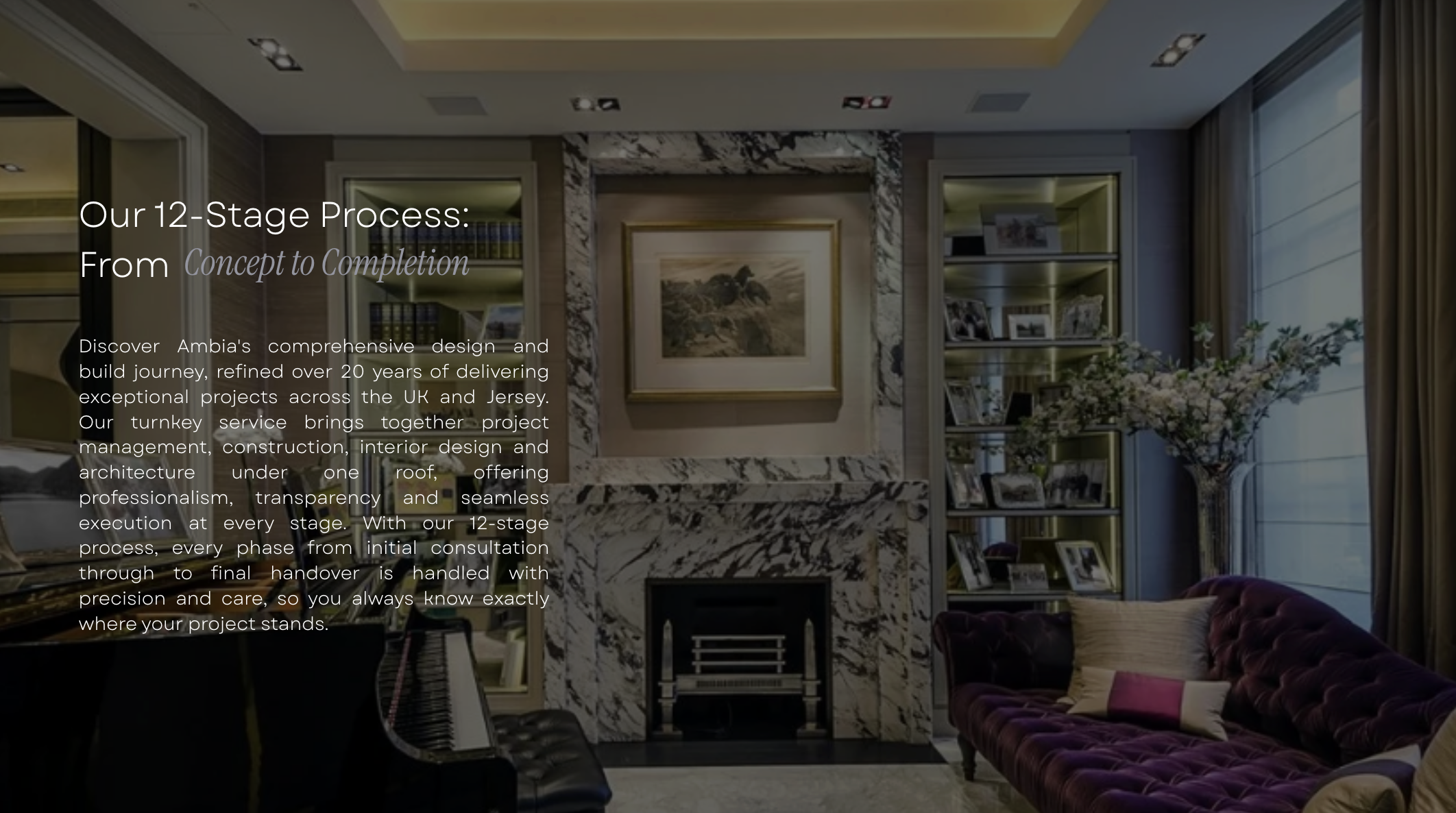 Ambia brings interior design, construction, and project management together as a single discipline, coordinating the architectural, structural, and planning expertise your project requires through our established network of RIBA-accredited partners. The result is a continuous process, free of the gaps and handovers that typically slow ambitious builds.